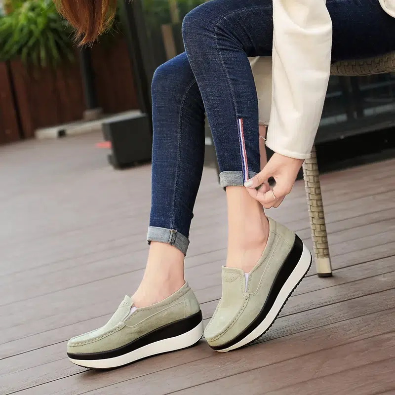 Unsere Mokassins mit Plateausohle sind eine trendige und modische Wahl für die Sommersaison. Diese hübschen Mokassins bieten einen hohen Tragekomfort und unterstreichen Ihren Stil. Hergestellt aus echtem Leder sind diese Mokassins weich, langlebig und verschleißfest. Sie verleihen einen Hauch von Eleganz und schaffen einen zeitlosen Stil, der sich mit jedem Outfit kombinieren lässt.