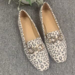 Unser Mokassin mit Leopardenmuster und Kette ist ein starkes Stück, das selbst schlichte Outfits sofort aufpeppt. Er passt perfekt zu einer groben Jeans, einem schwarzen Kostüm oder sogar einem fließenden Kleid, um einen unwiderstehlichen Kontrast zu schaffen.