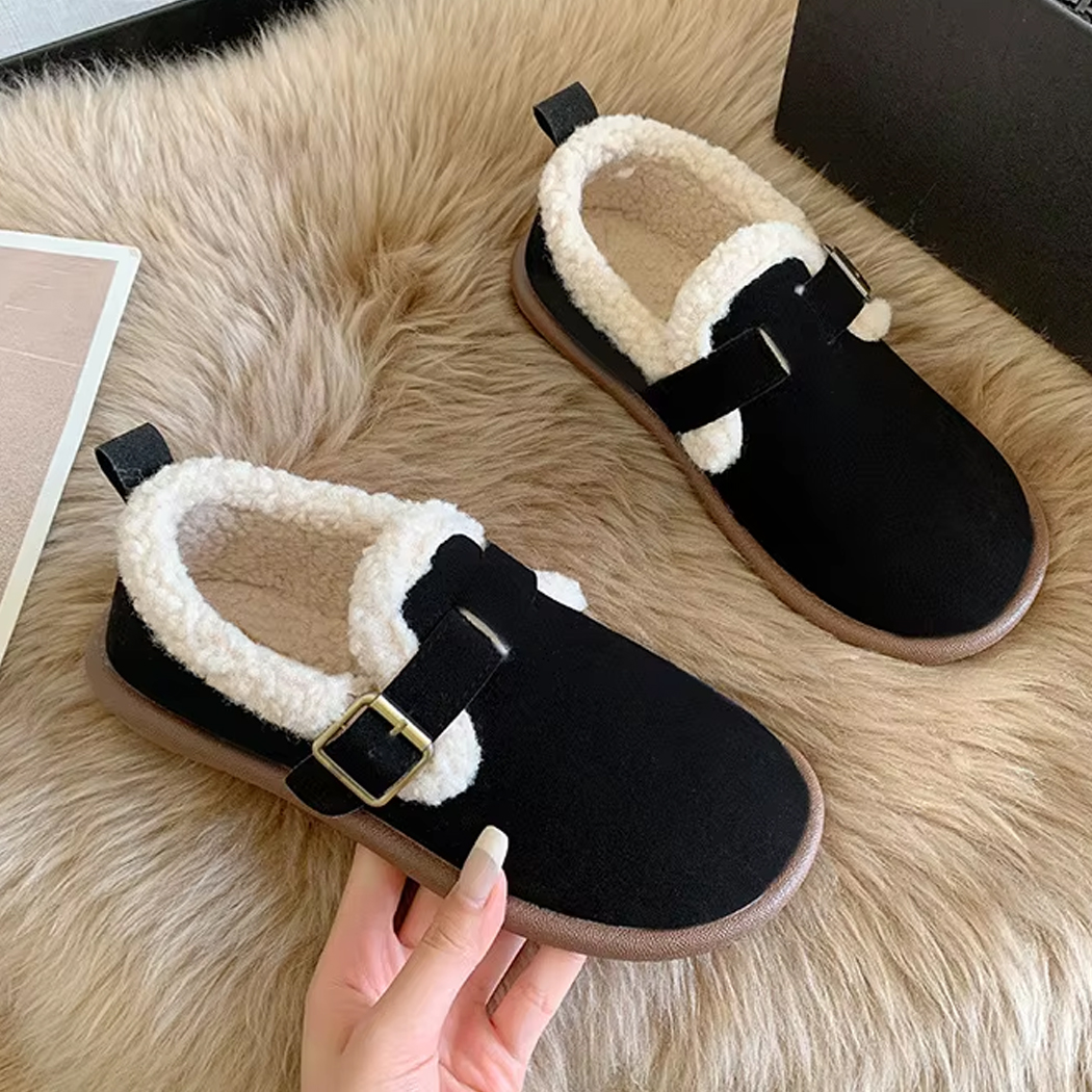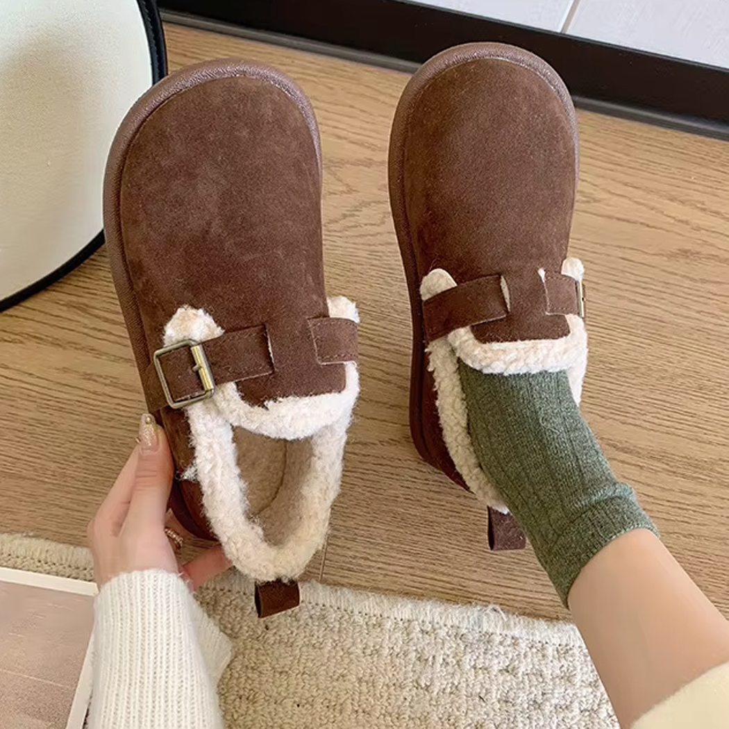 Dieser geschlossene Clog ist innen komplett gefüttert und hält Ihre Füße den ganzen Tag lang warm. Er ist aus synthetischem Wildleder gefertigt und fühlt sich auch außen superweich an.