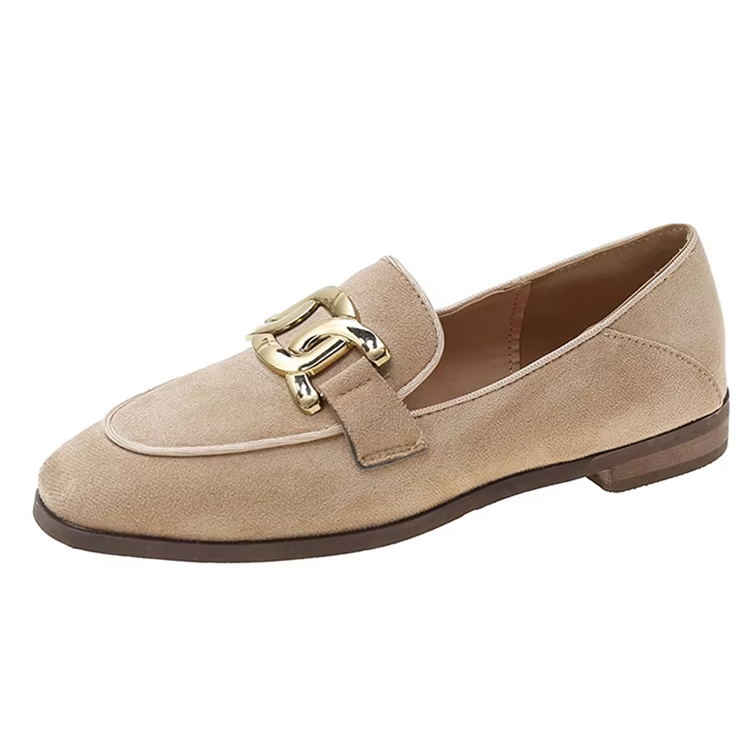 Unser Mokassin mit Vintage-Schnalle passt zu einer hoch geschnittenen Hose ebenso gut wie zu einem Midikleid oder einer geraden Jeans. Durch einfaches Anziehen wird aus einem einfachen Outfit ein raffiniertes Ensemble.