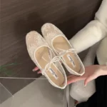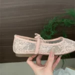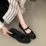 Diese flachen Damenschuhe lassen sich mühelos mit verschiedenen Outfits kombinieren – ob mit einem luftigen Kleid, einem eleganten Rock oder einer lässigen Jeans. Ihr zeitloses Mary-Jane-Design mit zarter Spitze verleiht jedem Look eine stilvolle Note und sorgt für einen trendbewussten Auftritt.