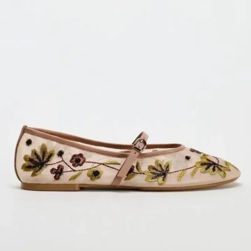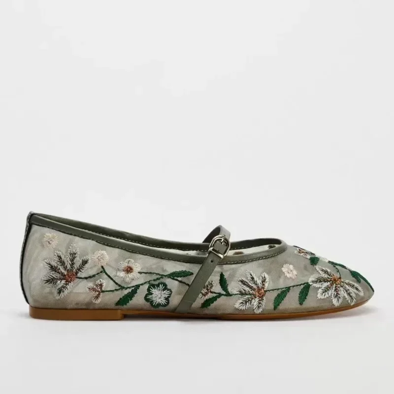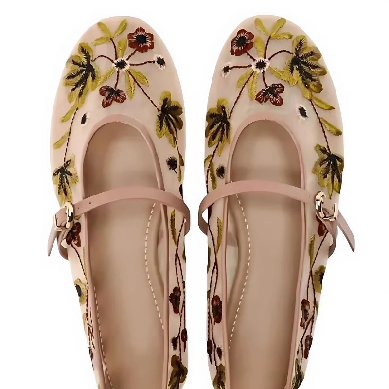 Diese luxuriösen Mary Jane Ballerinas für Damen zeichnen sich durch ihr feines Design und liebevolle Details aus. Die zarten, aufwendig gestickten Blumen verleihen dem Schuh eine romantische, aber dennoch moderne Note – inspiriert von den neuesten Designtrends der Saison. Ideal für alle, die im Sommer 2025 einen femininen und stilvollen Akzent setzen möchten, ob zu Kleidern, Röcken oder luftigen Stoffhosen.