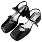 Ballerinas aus Lack mit Absatz sind der Inbegriff von Eleganz und Stil. Das glänzende Lackleder und das klassische Mary-Jane-Riemendesign verleihen diesen Schuhen einen zeitlosen Charme. Der mittelhohe Absatz bietet einen Hauch von Finesse, während die bequeme Passform den ganzen Tag über Komfort bietet. Perfekt für Büro und Abendveranstaltungen.