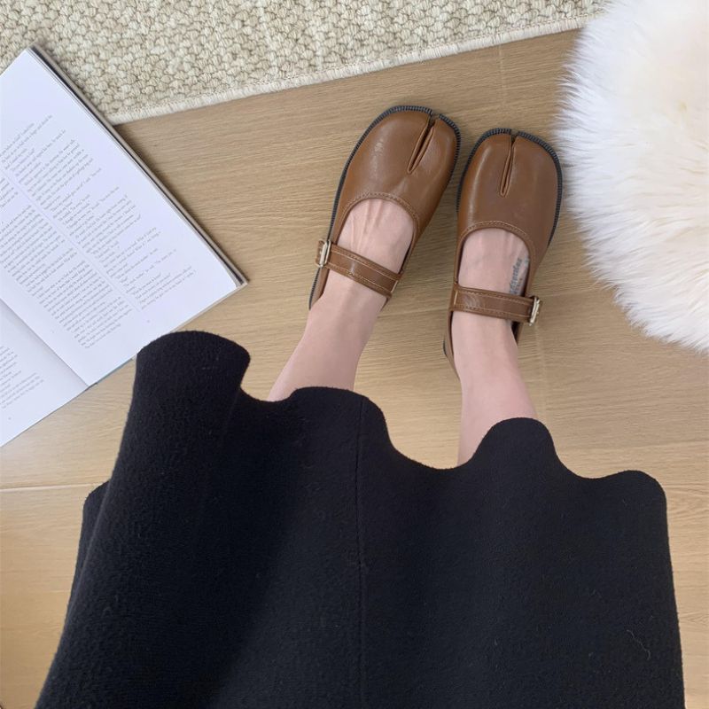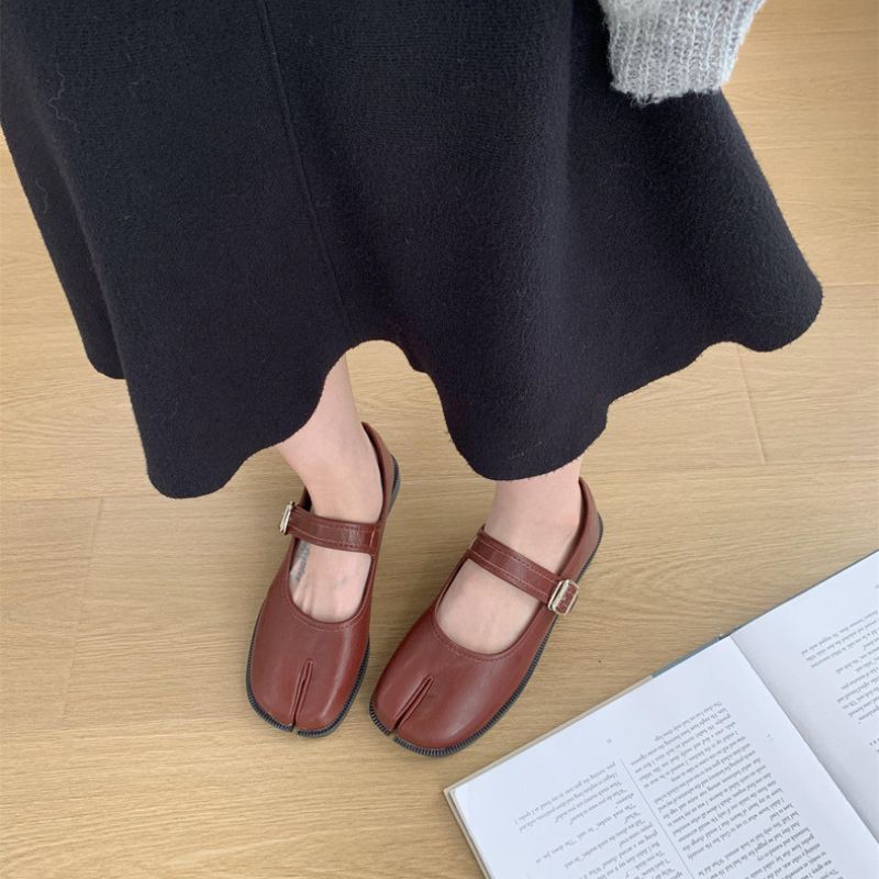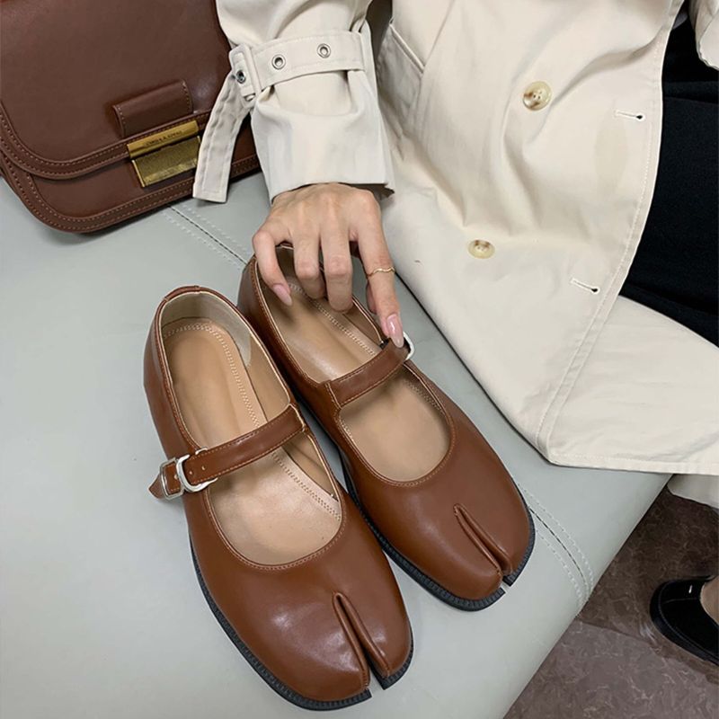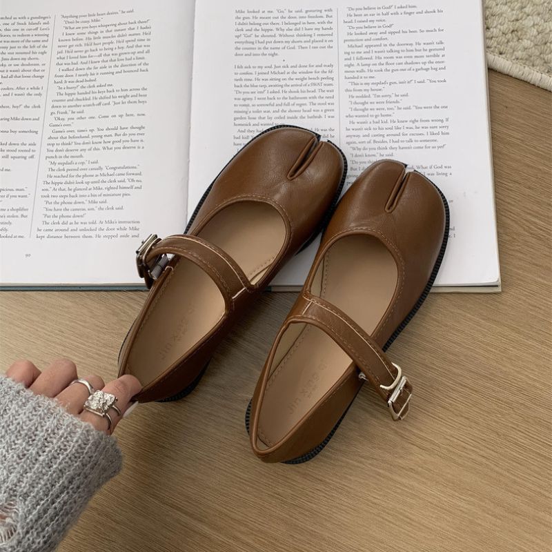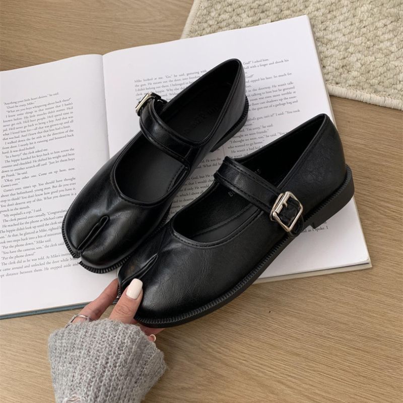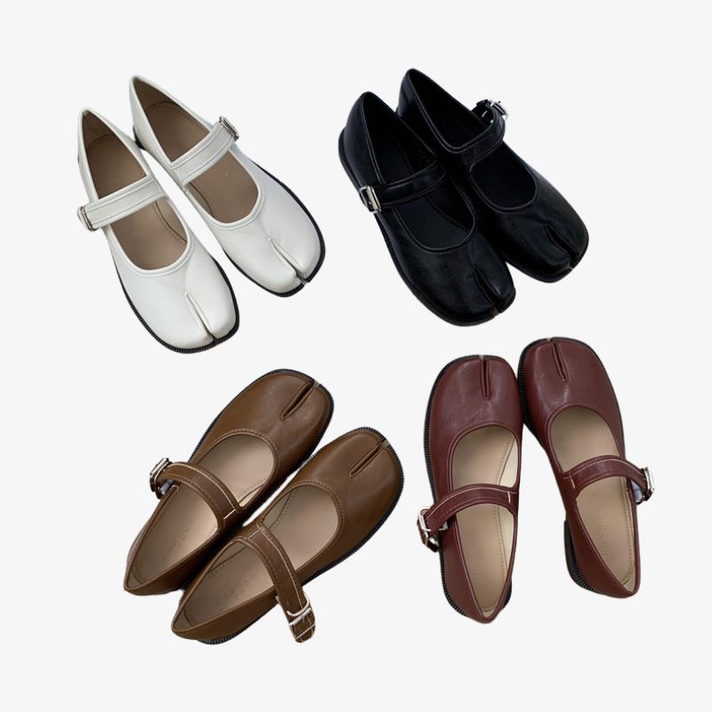 Inspiriert von den traditionellen japanischen Tabi-Schuhen, verbinden diese eleganten Mary Jane Ballerinas ein zeitloses Erbe mit einem modernen Touch. Ihr Design mit gespaltener Spitze bietet nicht nur eine einzigartige, avantgardistische Ästhetik, sondern auch optimalen Komfort und Flexibilität für den täglichen Gebrauch. Die elegante Verarbeitung aus Kunstleder und der verstellbare Riemen sorgen für einen raffinierten Touch und machen diese Schuhe zu einem Must-have, um Ihren Stil zu unterstreichen.