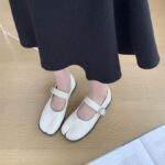 Diese flachen Tabi Mary Jane Schuhe verkörpern die perfekte Balance zwischen Stil, Komfort und Originalität. Ihr markantes Design mit geschlitzter Spitze sorgt nicht nur für einen einzigartigen Look, sondern auch für einen hervorragenden Halt des Fußes. Dank des verstellbaren Riemens und der flexiblen Sohle passen sie perfekt in Ihren Alltag, ob für einen Arbeitstag, einen Ausflug mit Freunden oder als gewagter Akzent zu einem eleganten Outfit. Machen Sie sich die von Japan inspirierte Mode zu eigen, die für einen modernen und raffinierten Look neu interpretiert wurde.