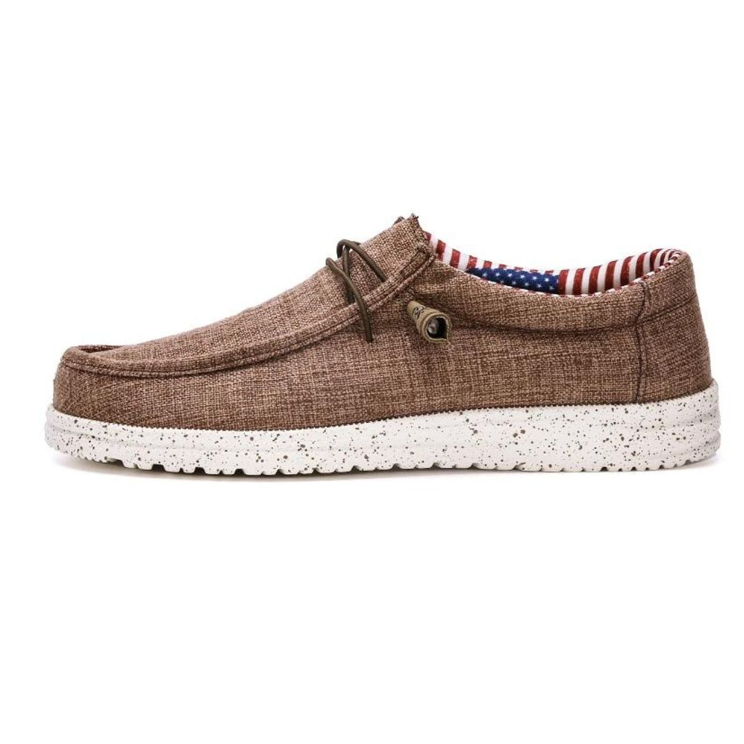 Open zeitlos mit unseren leichten Herrenmokassins aus Stoff, die in Blau oder Braun erhältlich sind. Diese klassischen Farben sind eine sichere Wahl, die zu jedem Anlass und jedem Stil passt.