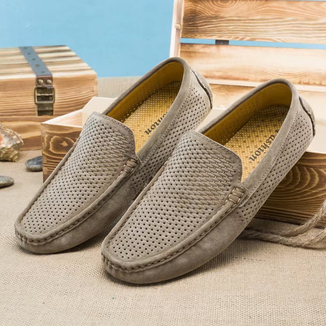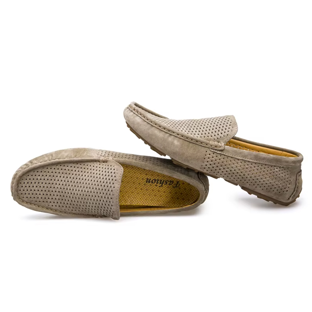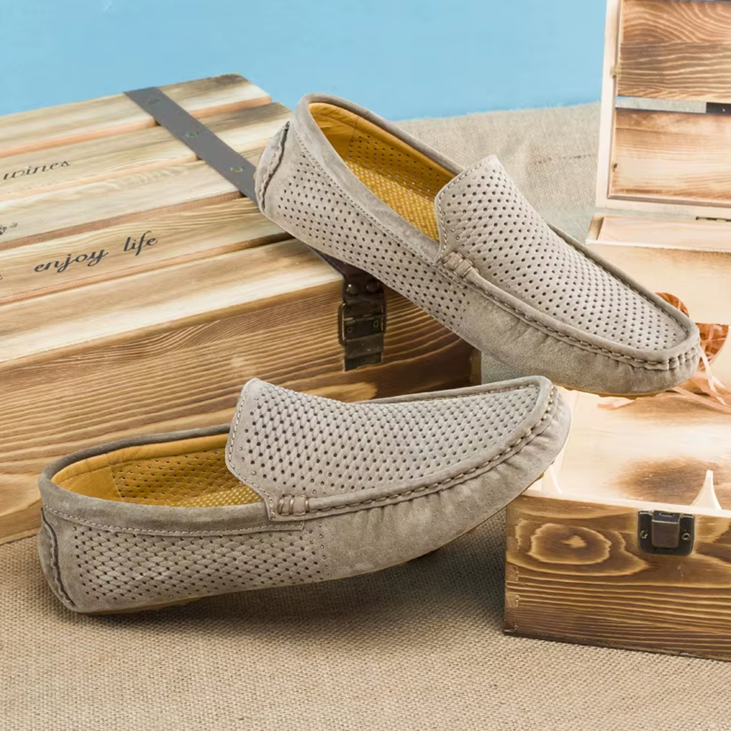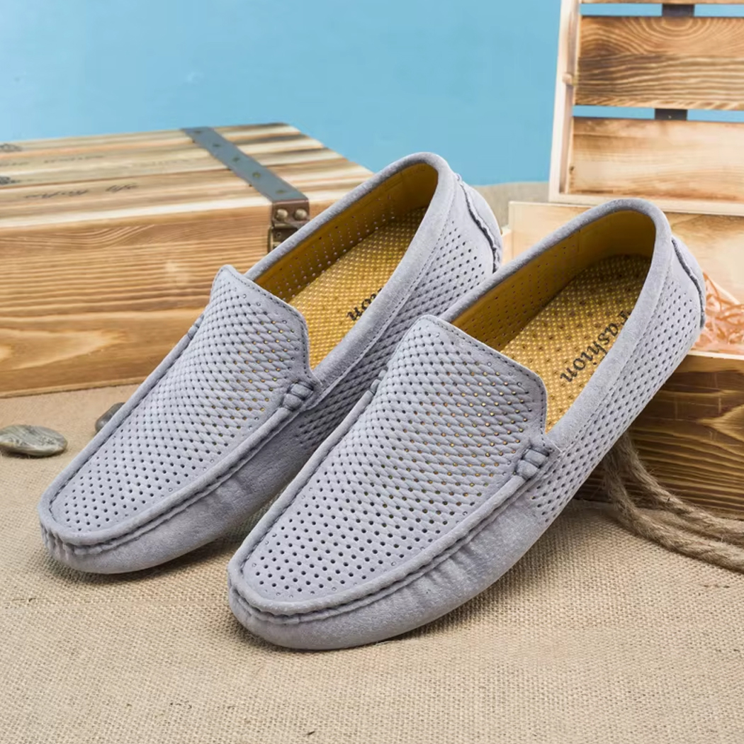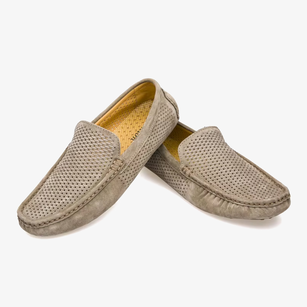 Dieser Mokassin wurde für die warme Jahreszeit entworfen und setzt auf weiches, atmungsaktives Wildleder, in dem sich Ihre Füße auch bei steigenden Temperaturen wohlfühlen. Seine flexible und rutschfeste Sohle begleitet Ihre Bewegungen fließend.