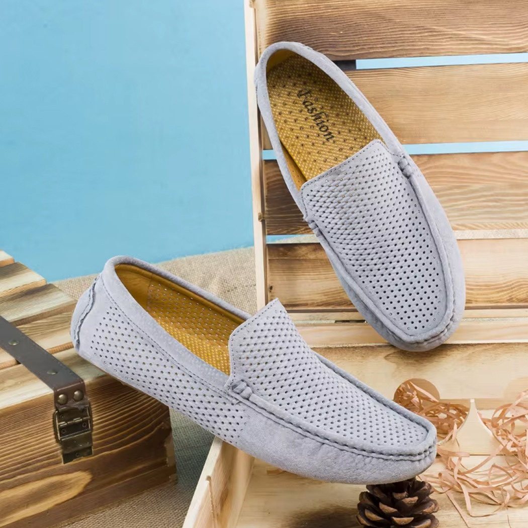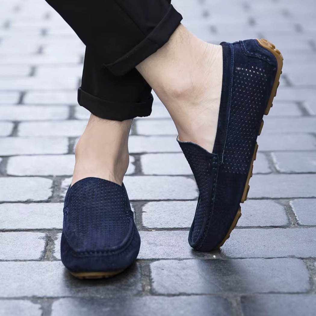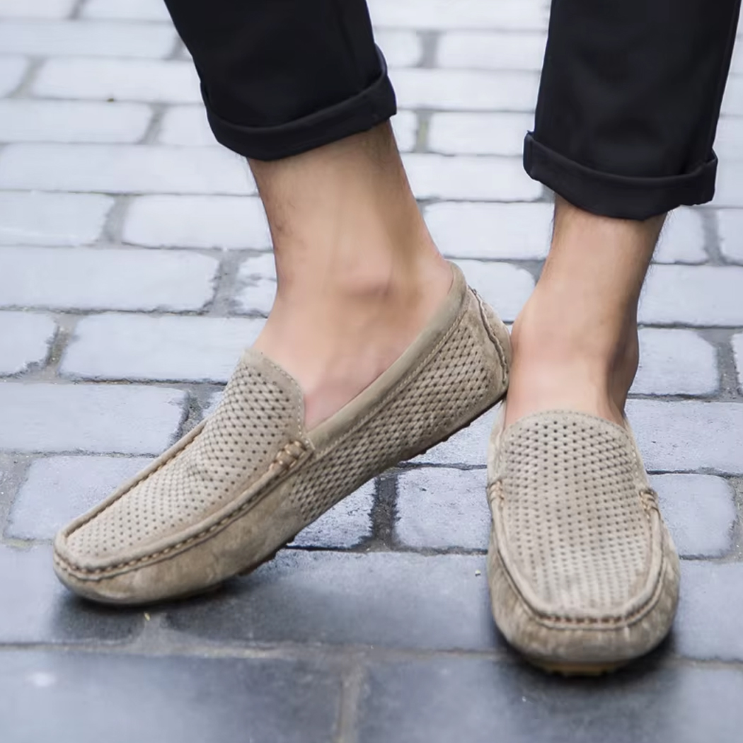 Dieser sommerliche Mokassin ist weder zu formell noch zu lässig und passt sich mit verblüffender Leichtigkeit an jede Situation an. Ob zu hochgekrempelten Chinos, eleganten Shorts oder sogar einem Sommeranzug getragen, er lässt die Silhouette schlanker wirken, ohne übertrieben zu wirken.